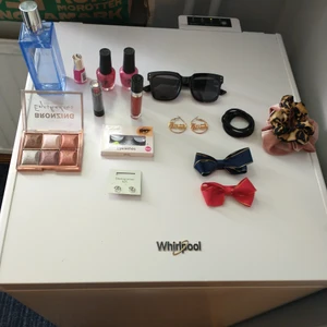 Säljer allt detta billigt till paket pris det mesta är helt oanvänt nytt.ögonskuggorna är endast testade på handen och parfymen har jag testat tre gånger. Läppstiftet är testat på handleden och läppglanset är oanvänt.resten är aldrig använt.allt för 300.