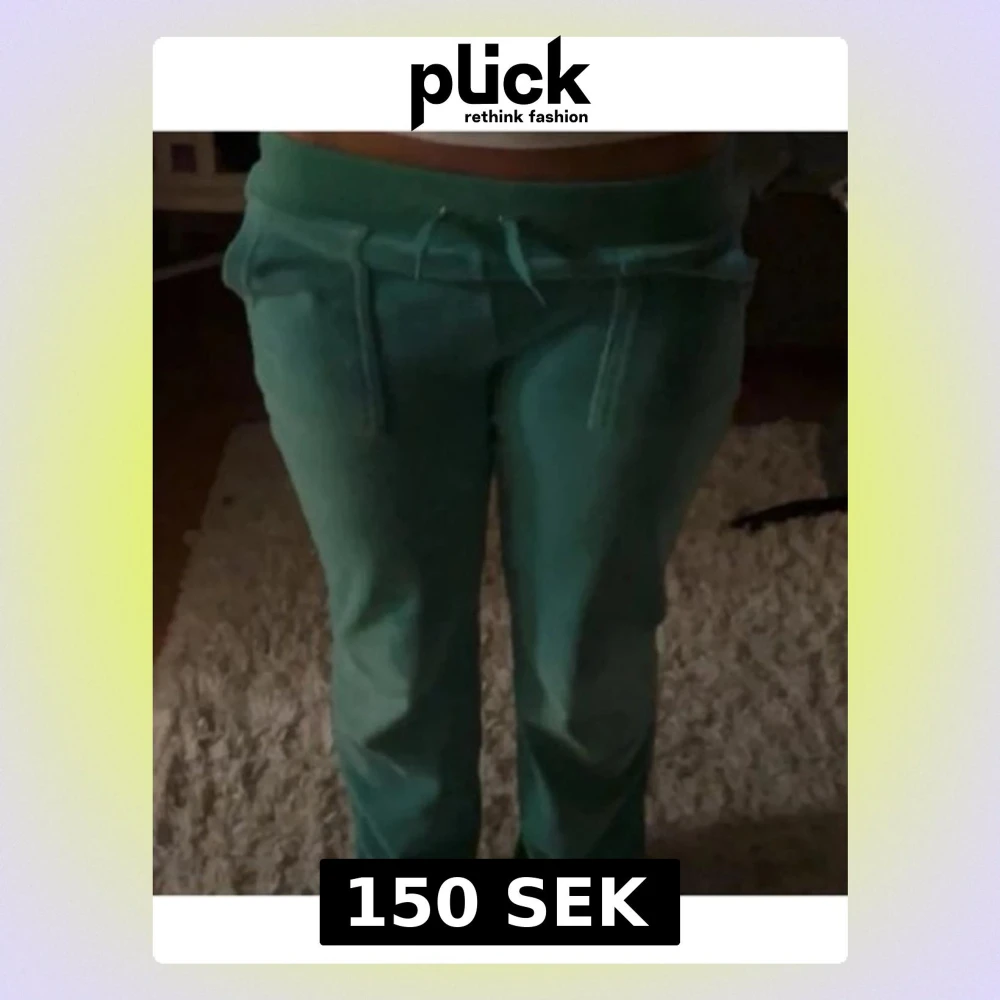 Fina jucy Couture byxor i turkos, grön färg med fickor ibak. Pris kan diskuteras. Köpte dom på plick och tror inte dom är riktiga då dom inte har jucy Couture märket vid snörerna då det finns på bilden💛storlek xs men passar S. Skriv även om ni vill veta hur längden är osv.