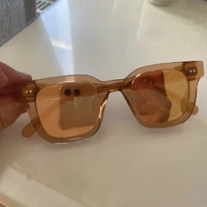 Ett par chimi solglasögon i färgen peach. Glasen är spegelglas och är gula/orange i solen. Det finns lite repor i glasen men absolut inte något som syns. Skicka om du vill ha fler bilder🫶🏻 har inte den tillhörande lådan men har tygpåsen för köpte begangat!