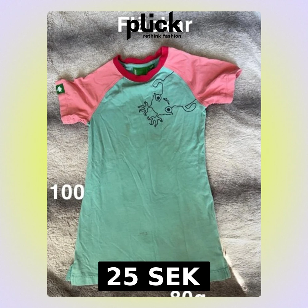 Säljer en söt nattlinne i grön och rosa med ett coolt tryck av en tecknad figur på bröstet. Nattlinnet har kontrastfärgade ärmar och halsringning samt en liten grön etikett på ärmen. Perfekt för en avslappnad stil.🌸Fläckar. Storlek 100