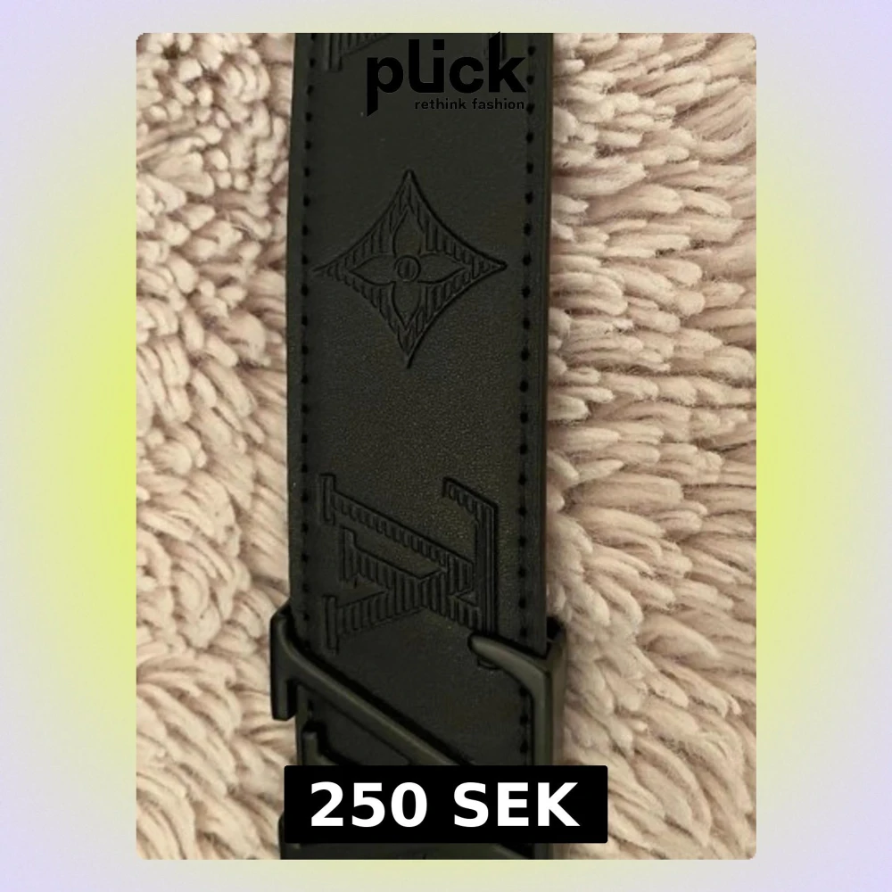 Säljer ett svart bälte med präglade logga och monogramdetaljer längs hela bandet. Bältet har ett mattsvart llvvv spänne och exklusiv känsla. Perfekt accessoar för att lyfta vilken outfit som helst.