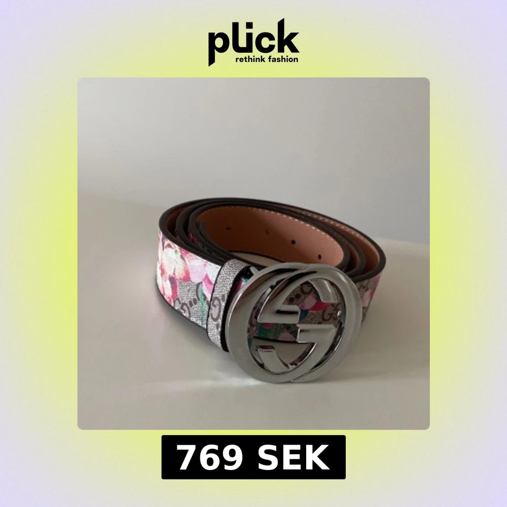Rosa GG bälte med blommor som mönster, bra kvalite och helt nytt skick