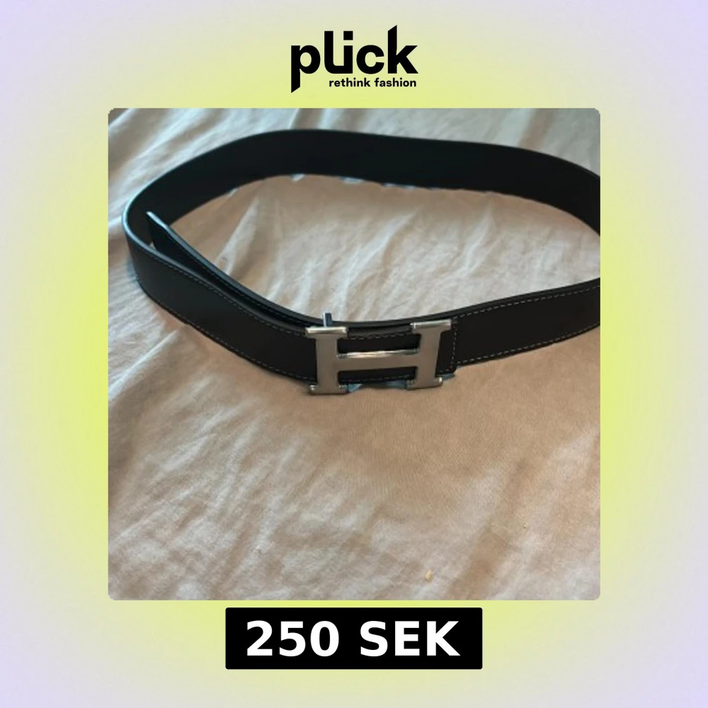 Snyggt svart skärp från H med ikoniskt H-format spänne i silverfärg. Bältet är gjort i slätt skinn med vita kontrastsömmar längs kanterna. Perfekt accessoar för att lyfta din outfit med en lyxig touch.