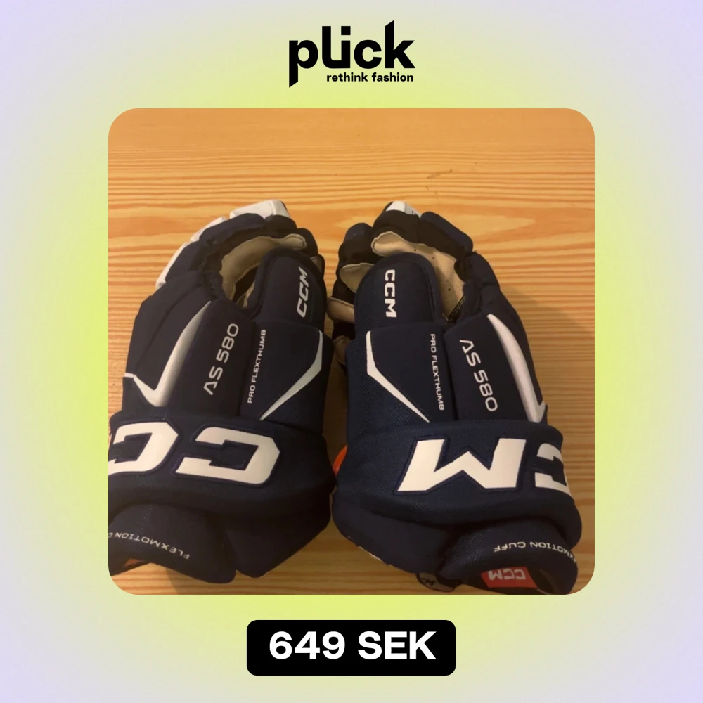 Hej! Säljer ett par HELT oanvända CCM AS 580 hockeyhandskar i mörkblått med vita detaljer. De är i storlek 13 tum (33 cm) och har en flexibel design för optimal rörelse. Perfekta för hockeyträning eller match!