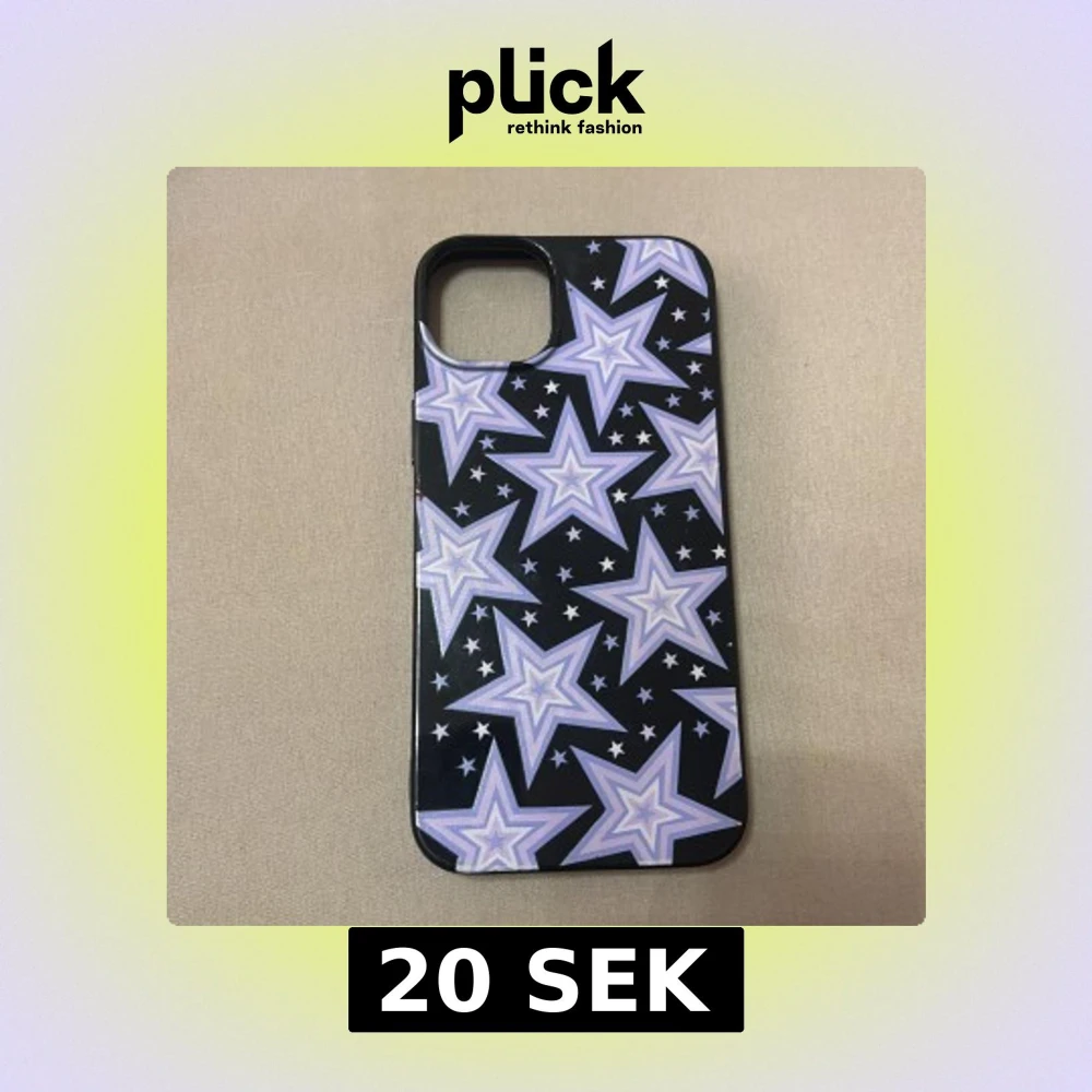 Snyggt svart mobilskal dekorerat med lila och vita stjärnor. Skalet har en slät yta och är designat för att skydda baksidan av din telefon. Perfekt för att ge din mobil en unik och stilren look.