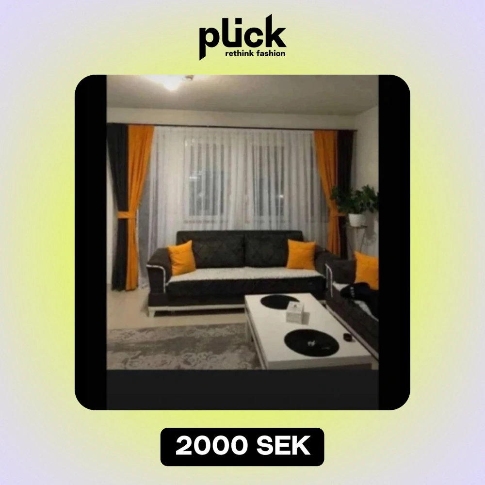 Gardiner som är skäddarsydda. Men i den nya huset passar de ej mera. Längt 2.20. Material: Samettyg sido.