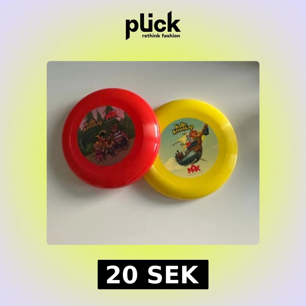 En röd och en gul frisbee med Kalle Kunskap motiv från Max. Kolla gärna mina andra annonser också, kan samfrakta med fler saker om du vill! Går även att hämta fysiskt i Stockholm