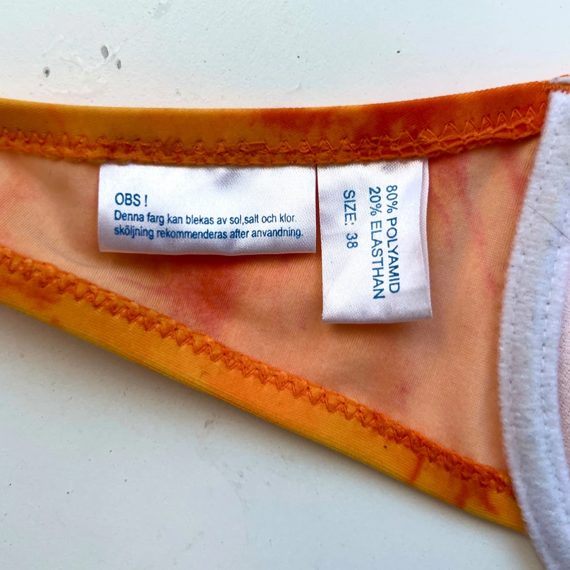 Så fin bikinitopp med pärldetaljet. Har blivit insydd (se sista bilden) för att passa strl 36. Använd köp nu <3
