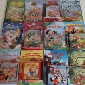 Olka sorters barnböcker med tillhörande DVD. Bra skick. 1 för 20 kronor och 5 för 80 kronor.