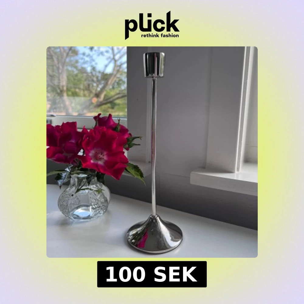 Silverfärgad ljusstake i metall från Rusta. Den har en modern, stilren design med rund fot och hög smal hals. Perfekt snygg detalj i inredningen. Säljer pga att den inte kommer till användning. Den är 25cm hög och foten är 8cm bred. 🤍