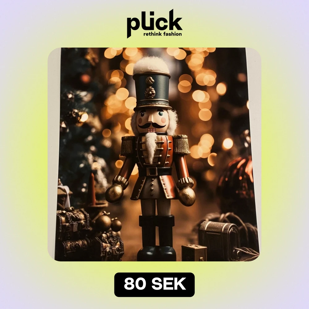 En klassisk nötknäppare i en festlig julmiljö. Den har en traditionell design med en blå hatt, röd uniform och guldiga detaljer. Perfekt som dekoration under julen med sin charmiga och nostalgiska stil. Bakgrunden är fylld med julbelysning och presenter, vilket förstärker den mysiga julkänslan.50x70