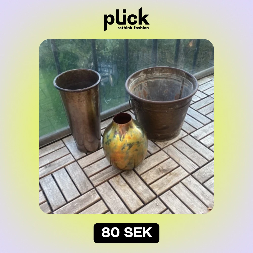 -Fina plåtkrukor /vas. 150:- för alla -Krukor från cult design. 50*15 Finns lite småskav men inget jätte synligt. 600:- för alla - skridskor storlek 36. Fint skick 100:- -Väska med nitar .helt ny. 150:- -Skor storlek 35 .80:-