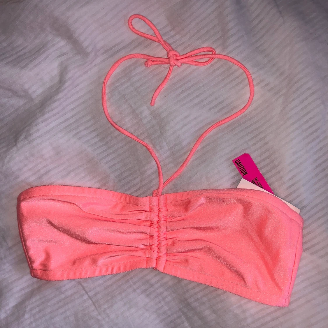 Helt ny! Bikiniöverdel i skimrande aprikos färg. Knyts i nacken. Ilägg kan stoppas i. Köparen står för frakten🧡
