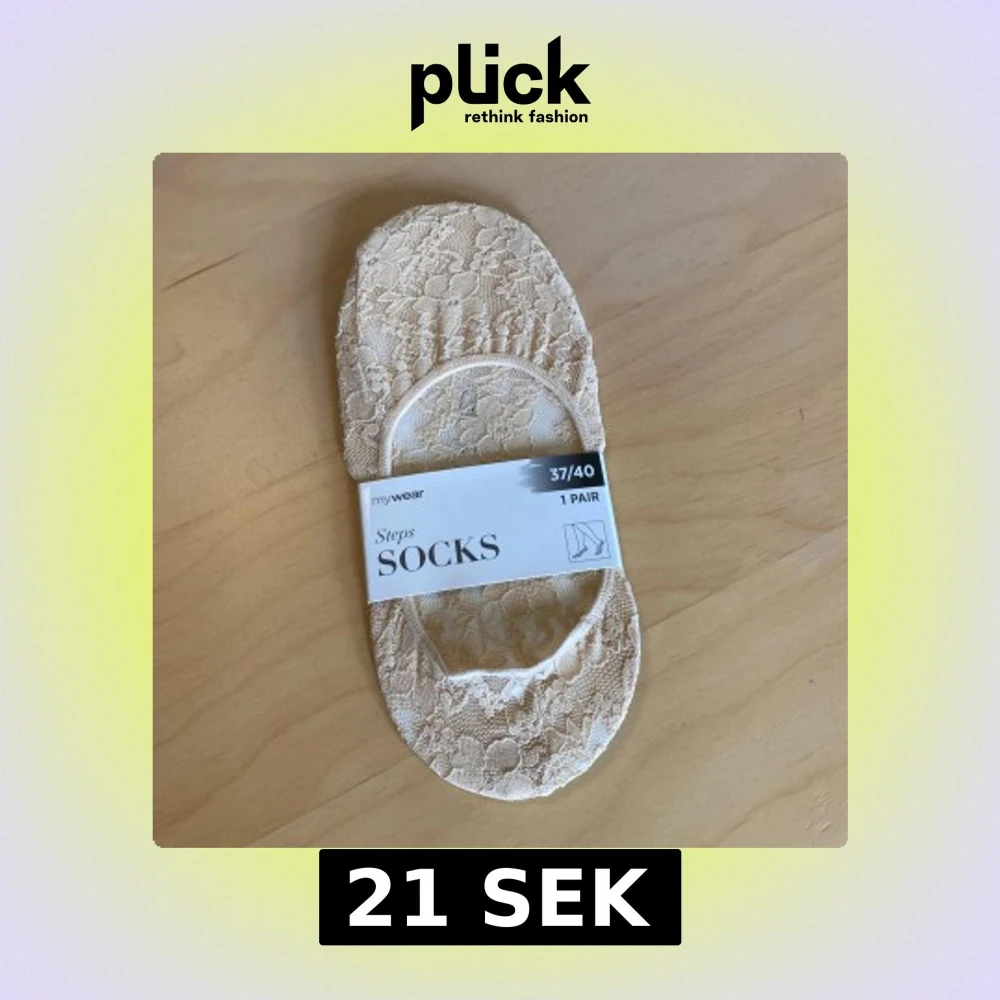Ett par tunna och beige strumpor i spets från Mywear. Oanvända.