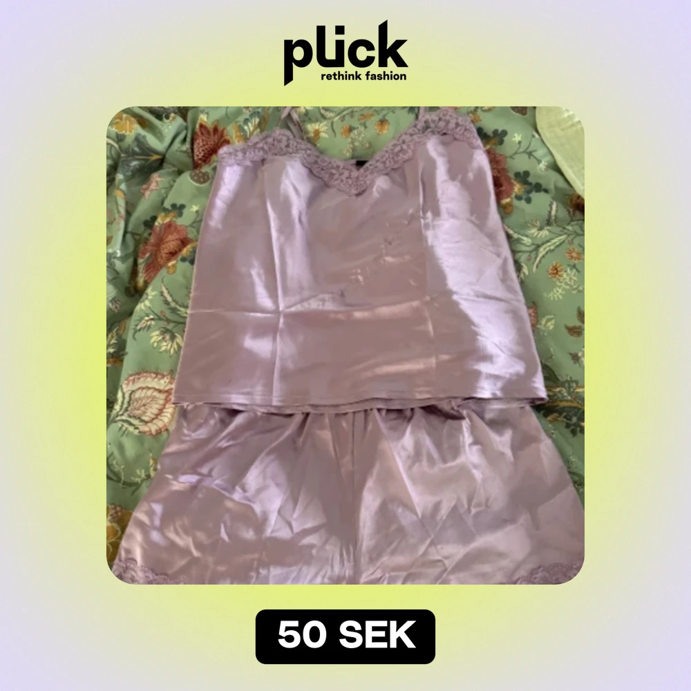 En helt oanvänd satinpyjamas med spets