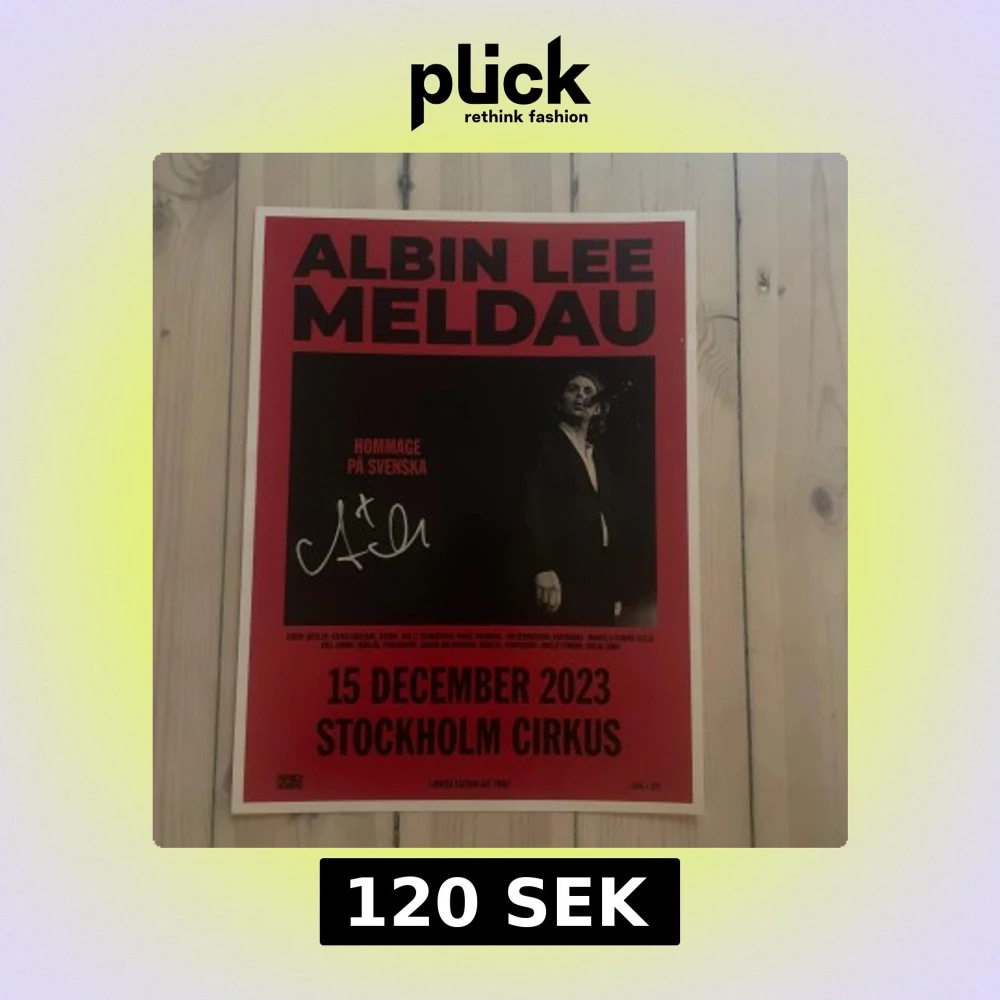 Affisch som är signerad av Albin Lee Meldau, efter hans konsert 'Hommage på Svenska' den 15 december 2023 på Stockholm Cirkus. Begränsad upplaga, numrerad 006/120. Kul för ett riktigt Albin-fan eller en musikfantast!