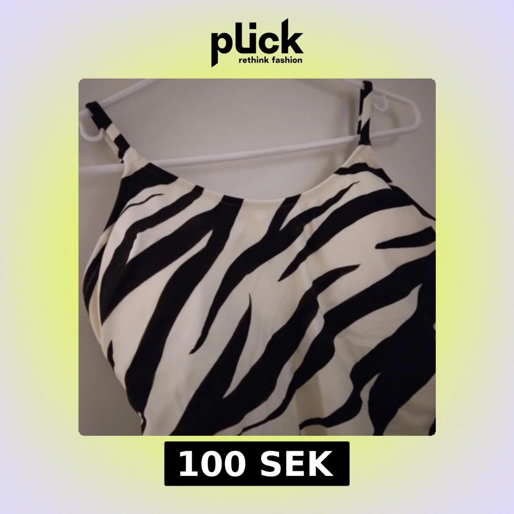 Snygg baddräkt i nyskick från H&M med svartvitt zebramönster och smala axelband. Strlk 44. Materialet är mjukt och stretchigt polyester, perfekt för strand eller pool. Modellen har en klassisk form med rundad hals och låg rygg. Supersnygg att matcha med solglasögon och strandväska. Felfri.