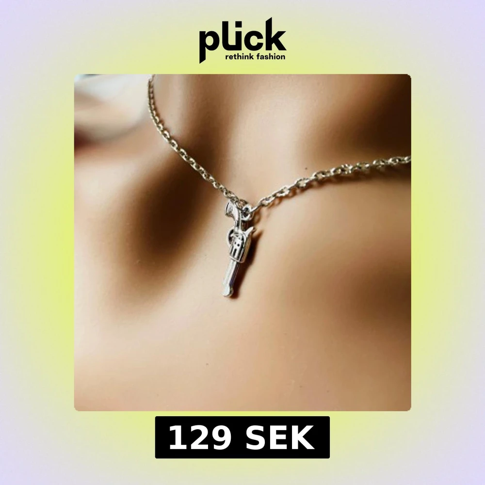 Ett coolt halsband i silverfärg med en detaljrik pistolberlock. Kedjan är tunn och har ett klassiskt länkmönster som ger en snygg touch. Perfekt accessoar för dig som vill sticka ut med en edgy och unik stil.
