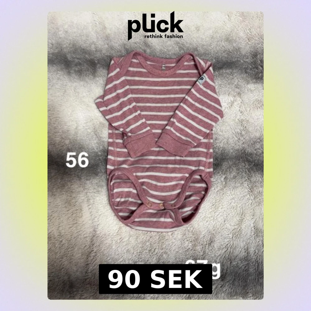 Säljer en söt långärmad body i rosa och vitt med randigt mönster. Bodyn har praktiska tryckknappar i grenen och mjukt material som känns skönt mot huden. Perfekt för små barn och enkel att ta på och av.🌸 Fint använt skick. Storlek 56