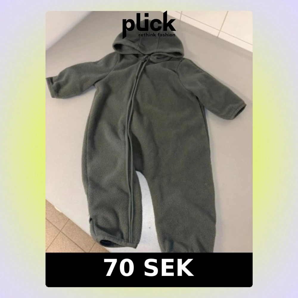 Mörkgrå fleeceoverall med huva
