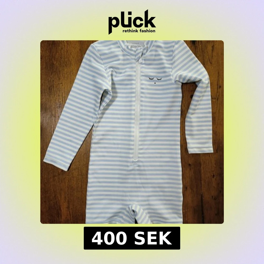 Worn twice. Perfect condition. My son outgrew it too quick unfortunately. Very cute, old-fashioned swimsuit. 50 SPF. ORIGINAL PRICE: 645 kr. Sam Long Sleeve Swimsuit kommer i en rand i blå och vit, med långa ärmar och dragkedja framtill. Detta är ett måste i sommargarderoben för din lilla! • UPF 50+ • Randigt tryck MATERIAL OCH TVÄTTRÅD: • 82 % polyester, 18 % elastan • Maskintvätt