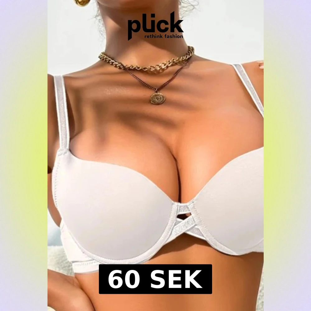 Snygg vit push-up bh med bygel och vadderade kupor. Bh:n har smala axelband och en stilren design med korsade detaljer framtill. Perfekt för dig som vill ha extra lyft och stöd under kläderna.