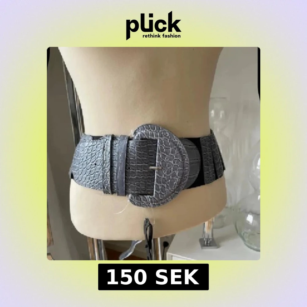 Snyggt brett bälte i grått med krokodilpräglat mönster och stor rund spänne. Bältet har elastisk baksida för skön passform och cool struktur. Perfekt för att ge outfiten en edgy touch och markerad midja.