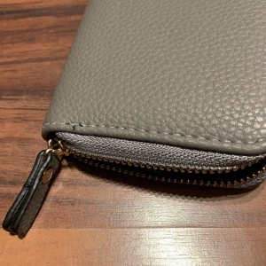 Den har plånboken är helt oanvänd,den är grå med guldig kedja.