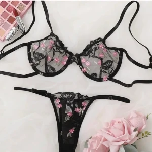 Super sött set som tyvärr inte passade mig): Ser ut exakt som på bilden🥰😍 Vid flera intresserande blir det budgivning!❤️ Kan gå ner i pris vid snabb affär😘 Skulle säga att det passar en 70A-B/75A-B då man kan ställa in storleken runtomkring ❤️ Trosorna är även justerbara