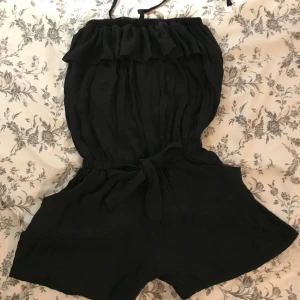Byxdress av okänt märke. Storleken passar mig som har small. Valfri halterneck-knytning annars går banden att gömma då byxdressen hålls uppe med insytt resår (se bild nr 2). Kan hämtas i Uppsala annars står köpare för frakt