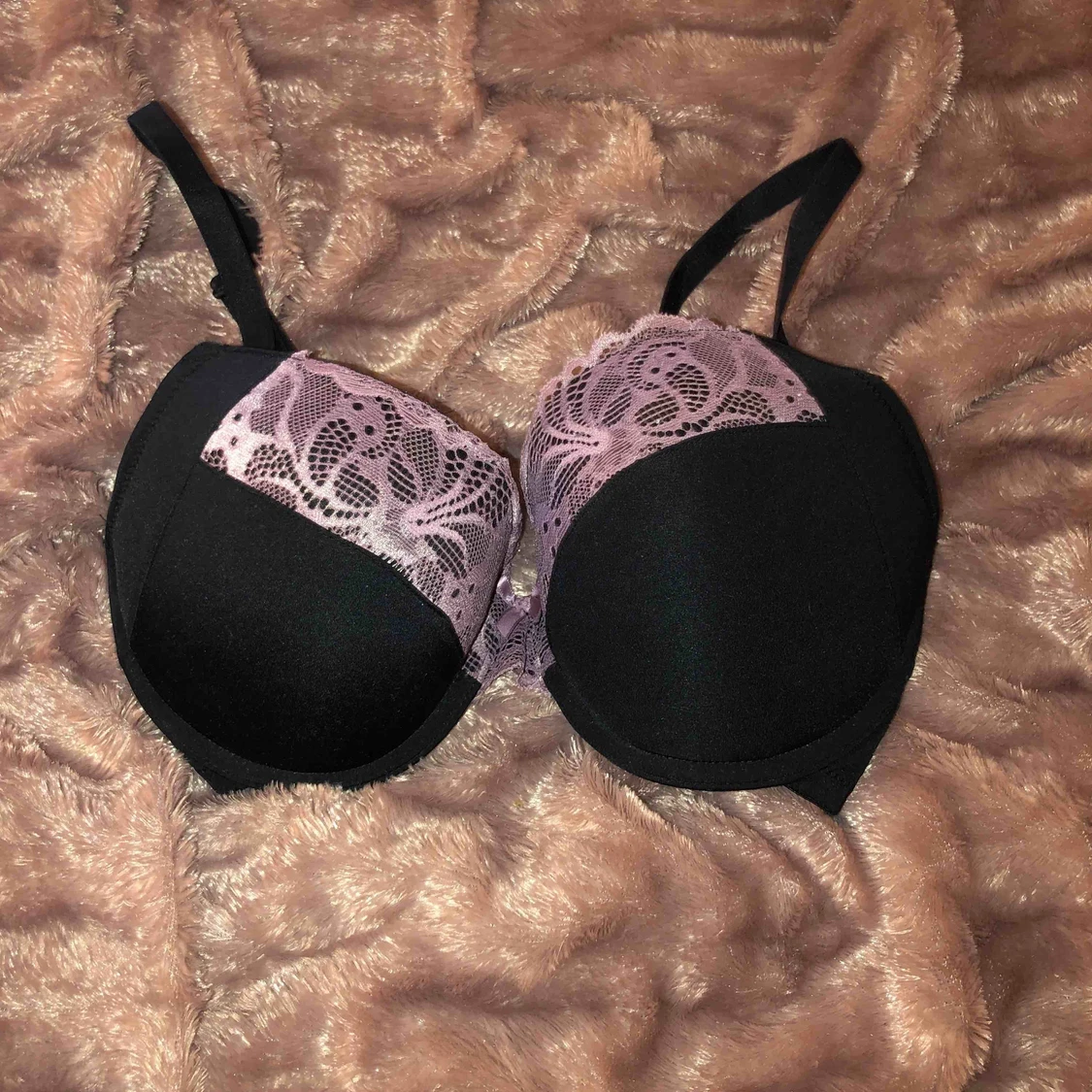 En svart bh med spets detaljer, de står E men de är push up så passa mindre oxå