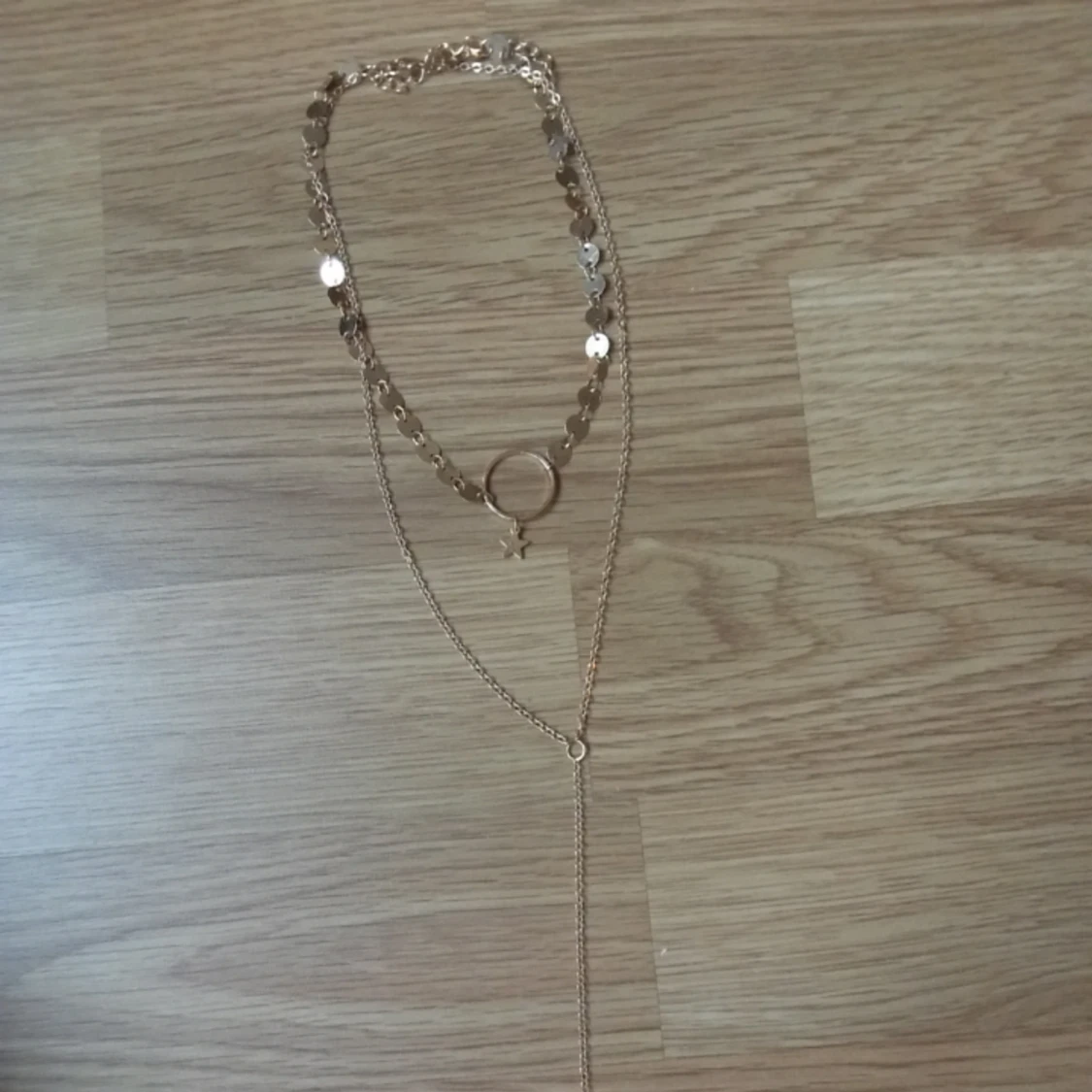 Halsband i guldfärgad metall i 2 lager med en stjärna och en stav i andra änden