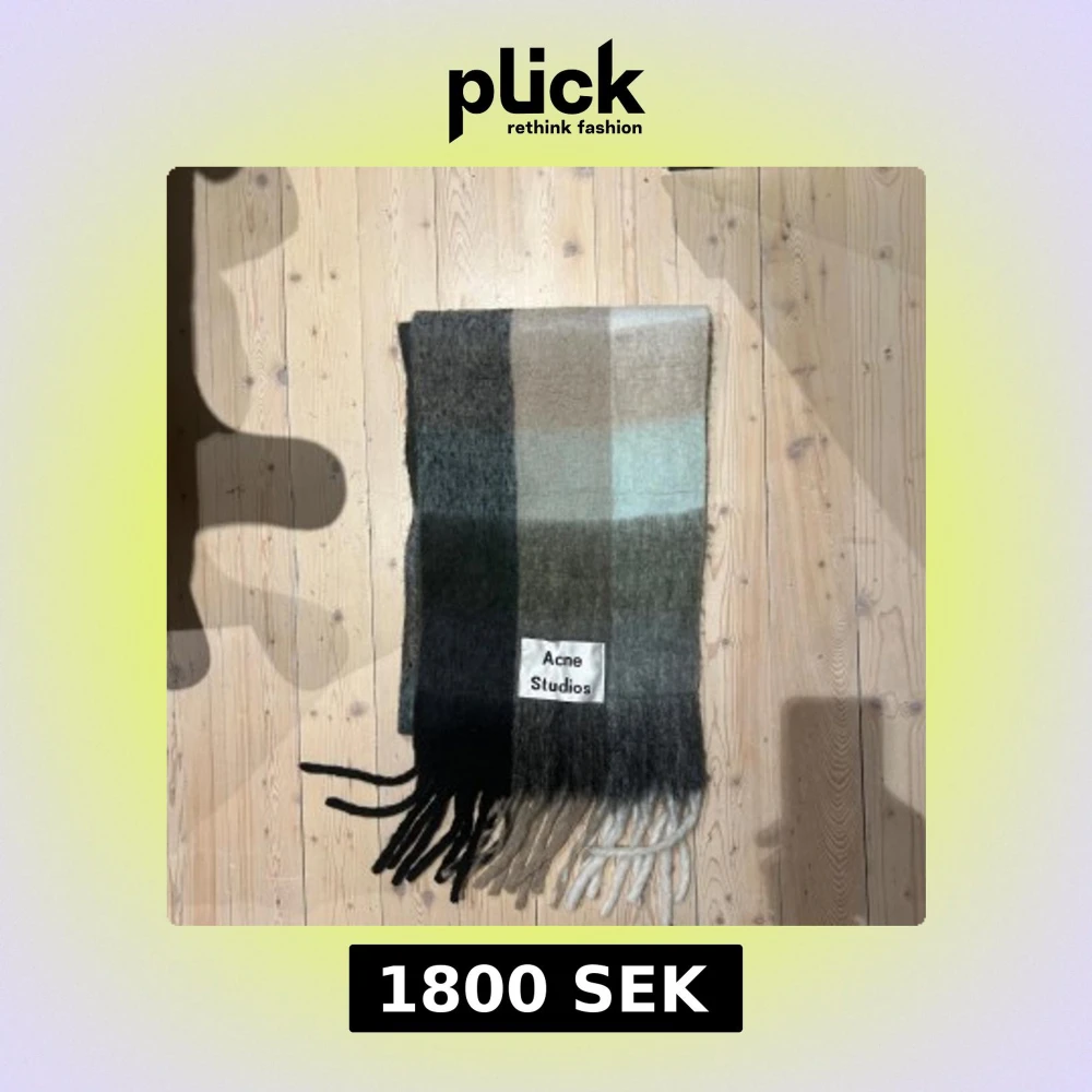 Unisex, man, kvinna halsduk från Acne Studios i olika nyanser av grått, beige och blått. Nypris 3100kr. Köpt i London. Aldrig använd. Storlek: 225x35cm