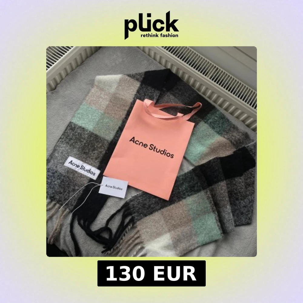 Snygg och stor rutig halsduk från Acne Studios i mjuk ullmix. Färgerna är svart, grå, beige, vit och mintgrön. Klassisk design med fransar i kanterna och Acne Studios-logga. Perfekt att svepa runt halsen för en cool look.