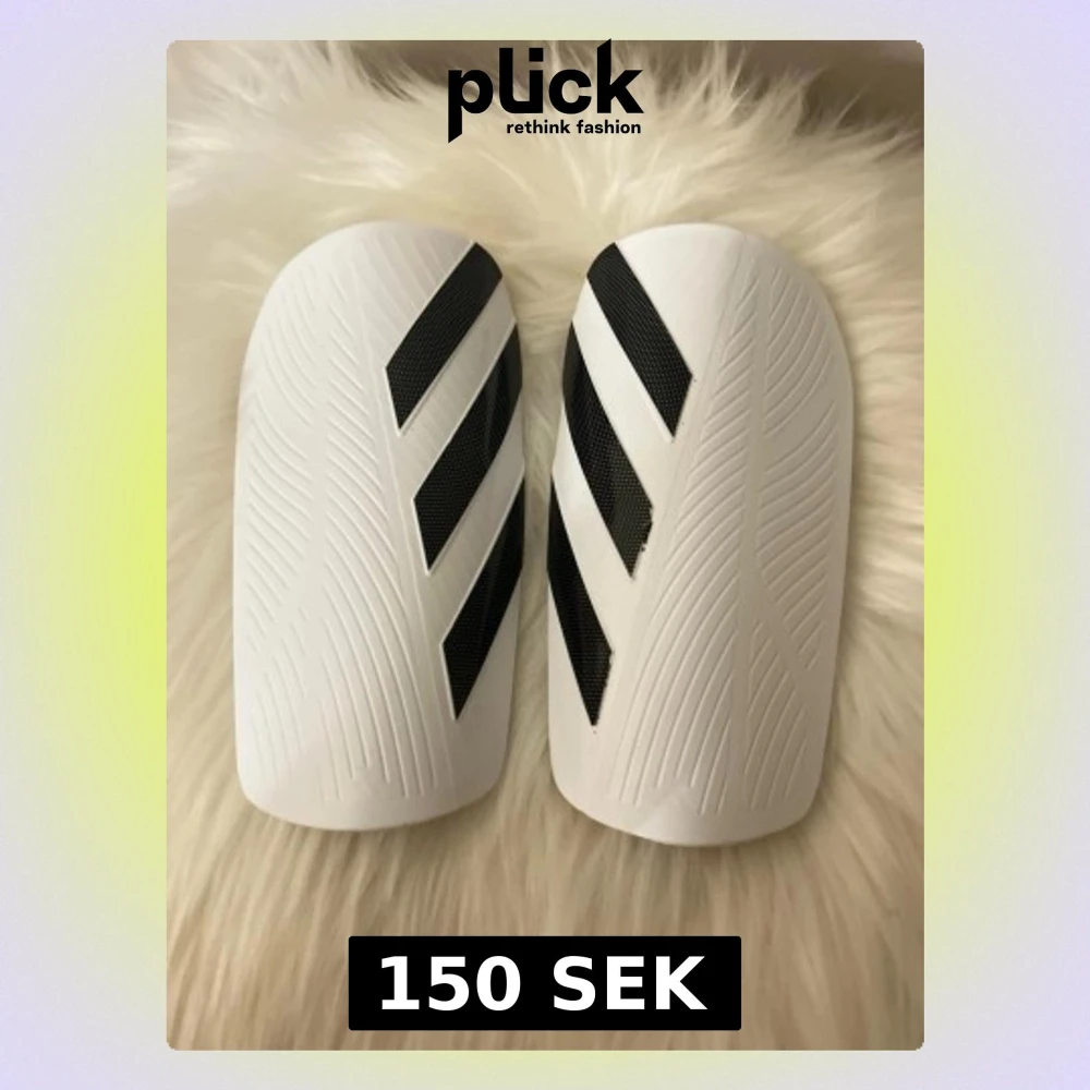Säljer ett par Adidas Tiro benskydd i storlek M, passar dig som är 140-160 cm. De är vita med svarta ränder och har en snygg, sportig design. Materialet är syntet och de kommer med en praktisk svart förvaringspåse. Perfekta för fotbollsträningen!