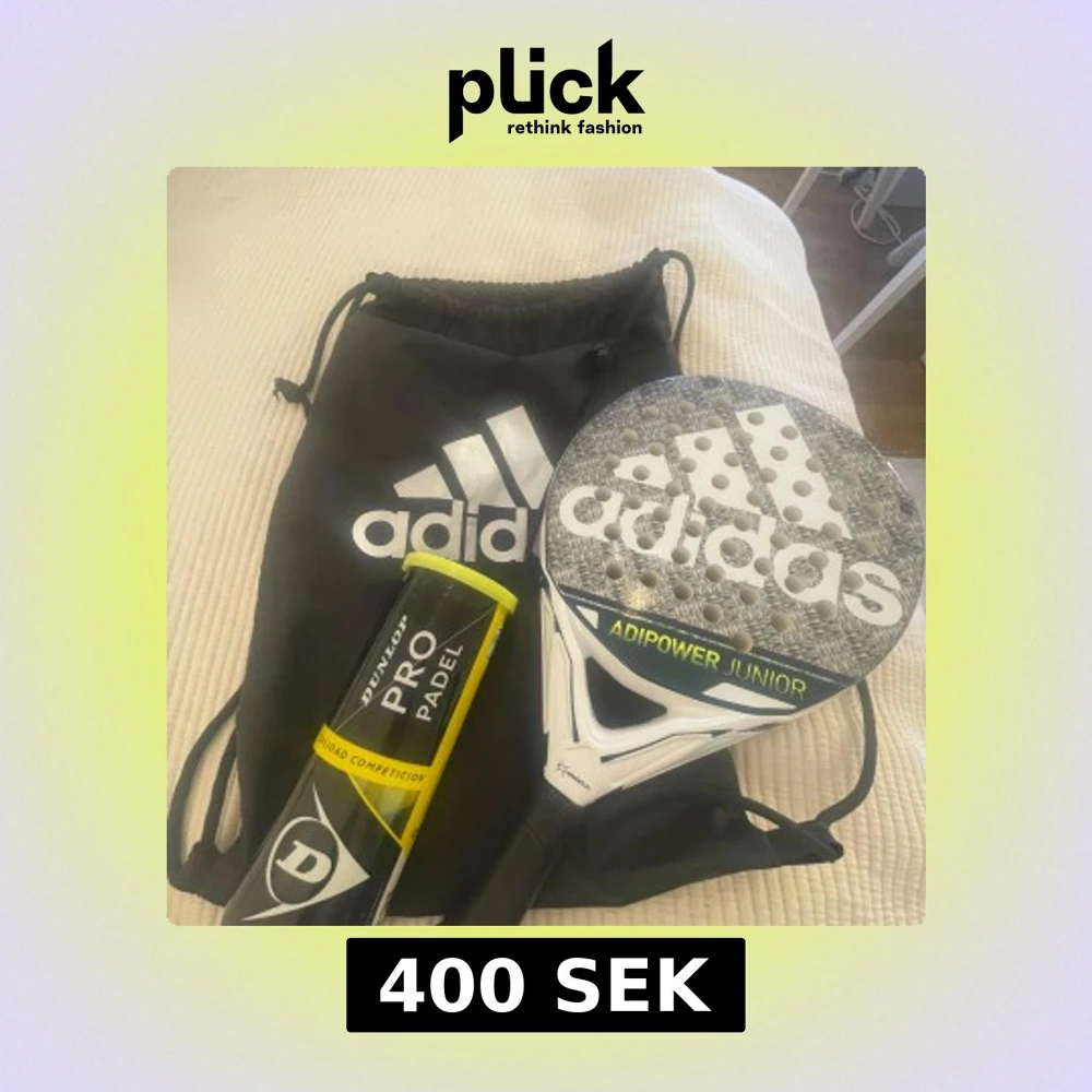 Perfekt för dig som spelar padel! Adipower Junior-racket från Adidas, med snygg design och bra grepp. Medföljer praktisk väska och Dunlop Pro padelbollar. Racketen kostade 600 och bollarna 100 kr nypris. Detta är endast använt 1 gång. Jag säljer nu för 400kr med allt detta!! Priset går att diskutera.