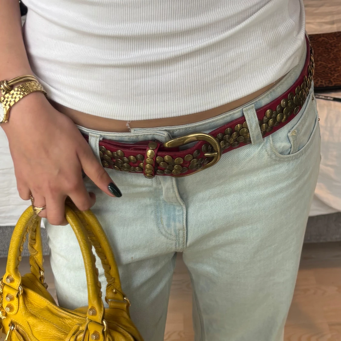 Jättefint läderskärp o toppen kvalitet med alla nitar kvar❤️