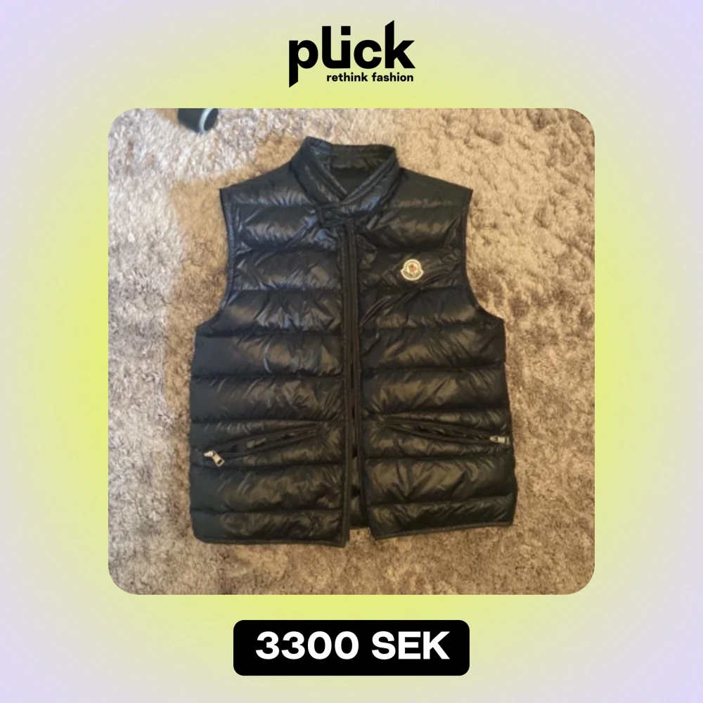Nästan aldrig använd moncler väst. Västen är toppen skick. Inga skador. Hundra procent äkta. Köpte för ungefär 3900kr. Jättemörk blå men ser mer ut som svart. Säljer pga aldrig använder.