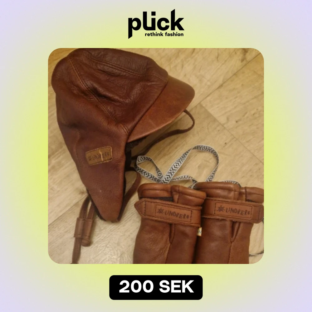 Superfint set av mössa och vantar i älgskinn. Storlek 44 på mössan och inga tummar på vantarna.
