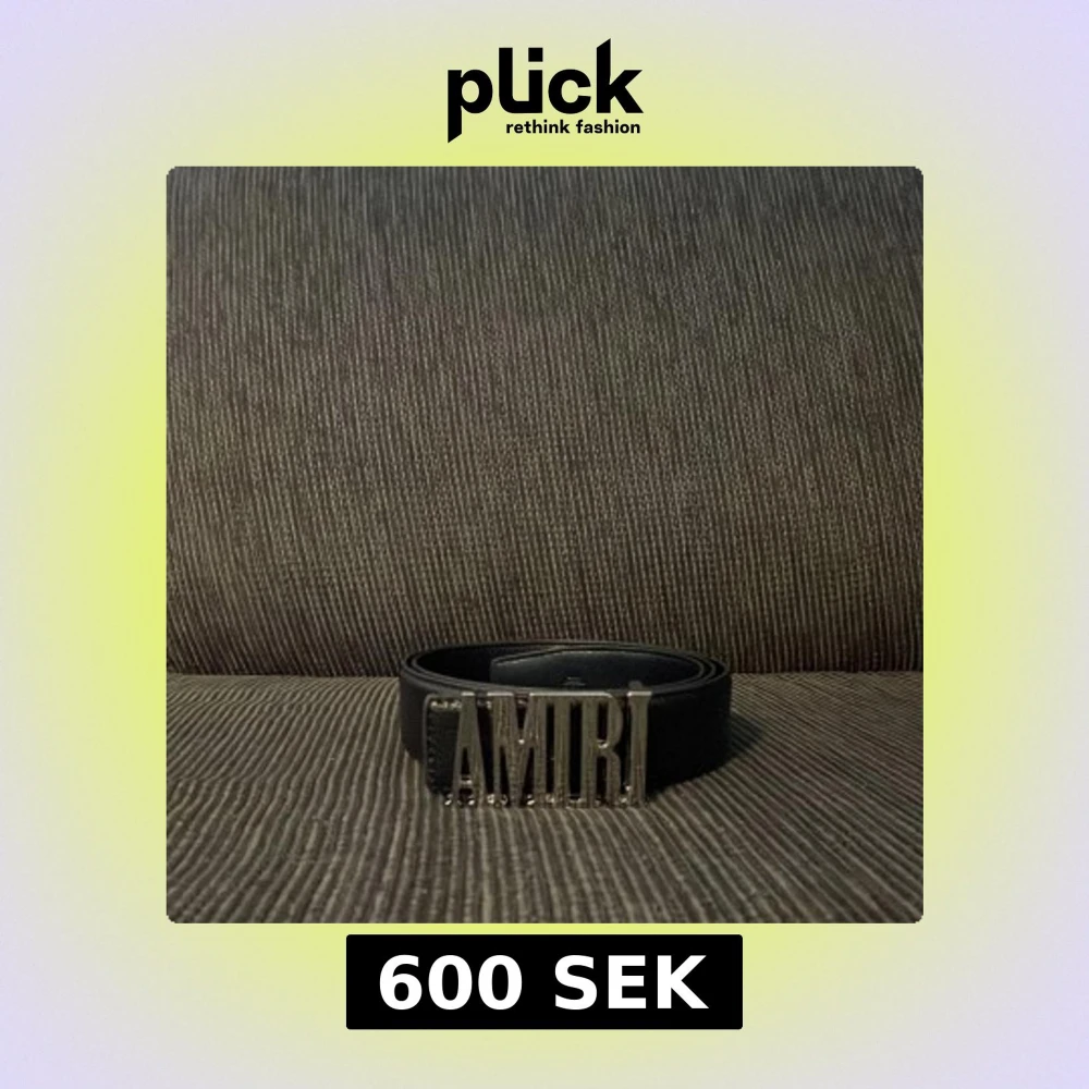 Säljer ett stilrent svart bälte från Amiri i skinn med en fet silverfärgad logotyp som spänne. Bältet är slätt och har en klassisk form, perfekt för att lyfta din outfit med en lyxig touch. Storlek 110 cm, passar dig som vill ha något exklusivt och snyggt.