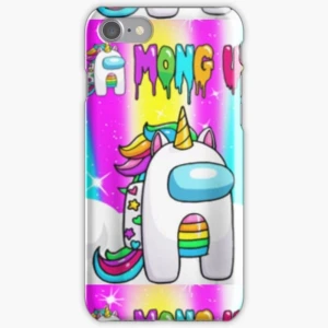 färgglatt Among Us-unicorn skal. Skalet har regnbågsfärger och unik design som sticker ut.