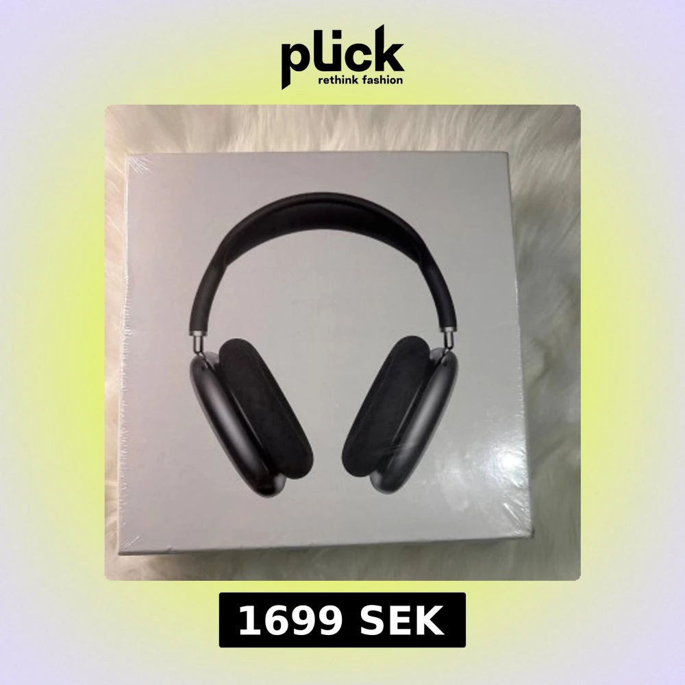 Säljer headset. Förpackningen är fortfarande inplastad och visar hörlurarna i en elegant svart design. Perfekt för musikälskare som vill ha högkvalitativt ljud och stilren design.