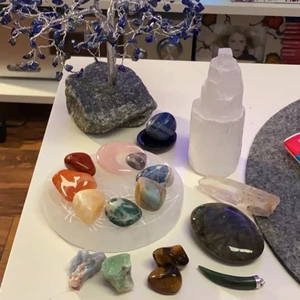 här finns ytterligare bilder på stenar och kristaller jag säljer:) det gäller fast pris (2kr/g) på vanliga tumlade och råa kristaller men speciella stenar som carvings och palmstones säljs endast vid bra bud:) ⚠️obs alla säljs inte⚠️ t.ex. selenitplattan och the tree of life med lapis lazuli 🕯🔮🌖✨