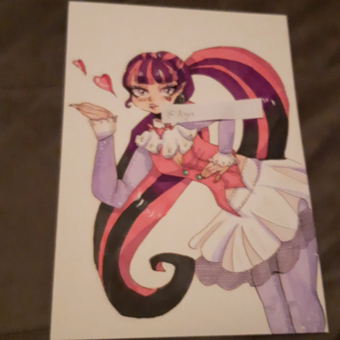 Selling a hand drawn Draculora drawing. I used high quality paper and markers and used acrylic paint for the highligts. I tried to go for a pastel vibe. Can be used as a cute decoration or as a small poster for a desk! Please contact me if u have question