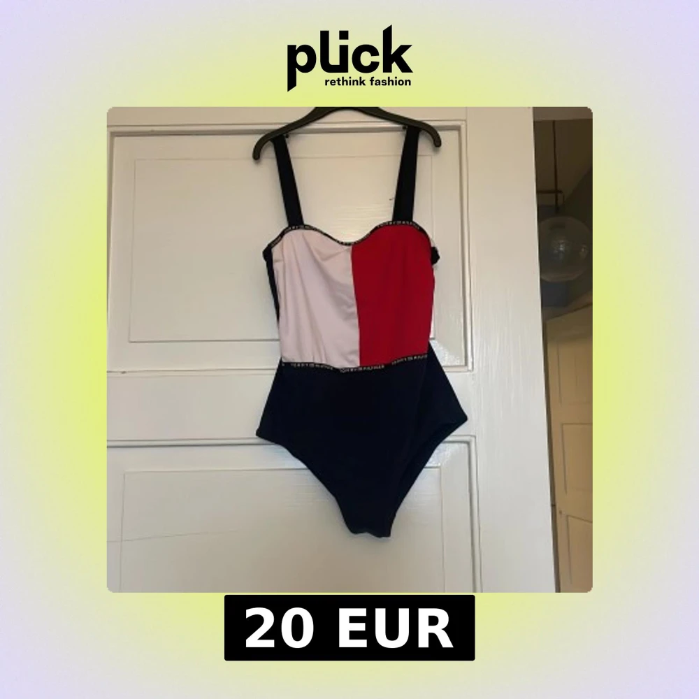 Säljer en snygg baddräkt från Tommy Hilfiger med breda axelband och färgblock i vitt, rött och marinblått. Resår med logotyp under bysten och klassisk, sportig look. Perfekt för stranden eller poolen!