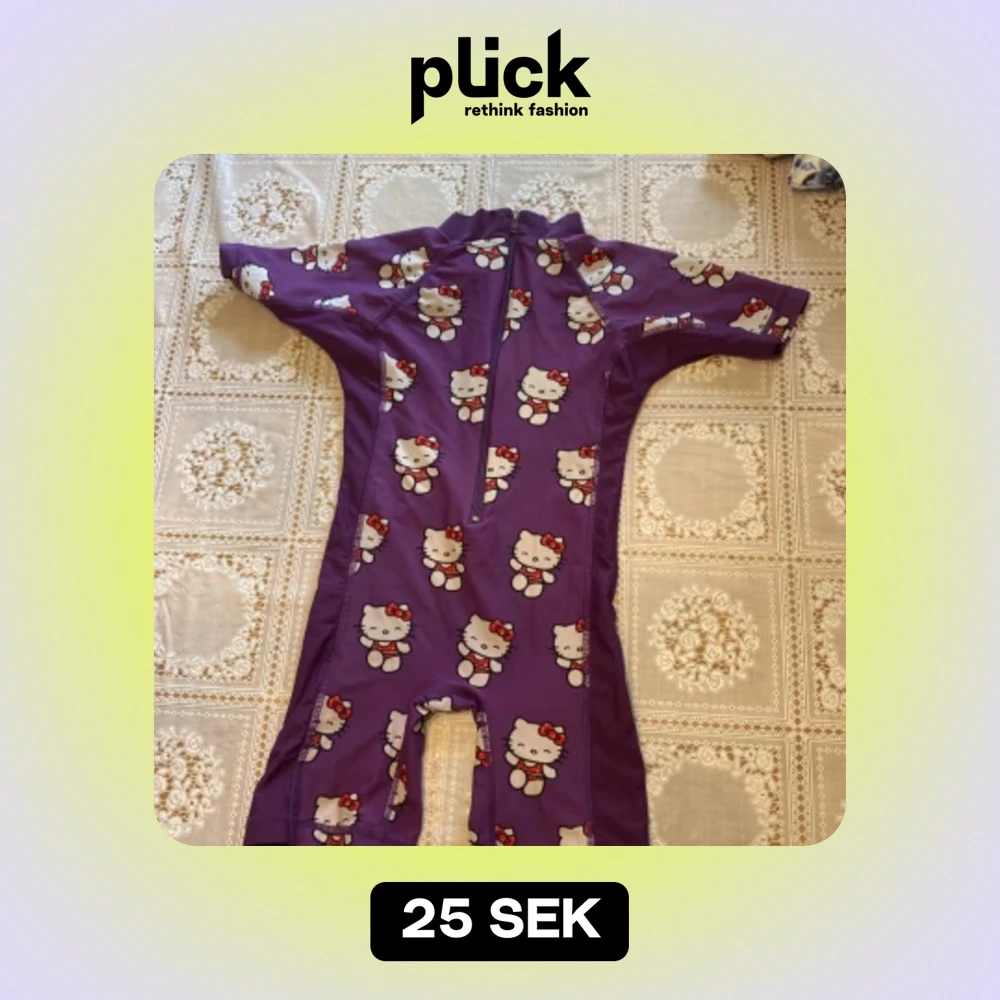 Hello Kitty badklädsel i storlek 98/104. Aldrig använd och är från ”Hello kitty”. Bild 1: framsidan Bild 2: baksidan