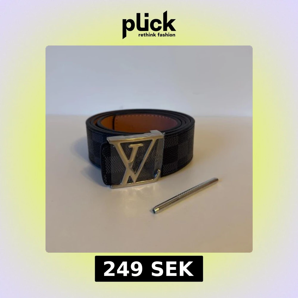 Snyggt svart bälte från L och V med klassiskt rutigt mönster och ikoniskt -spänne i silver. Bältet är gjort i skinn med brun insida och har en exklusiv känsla som lyfter vilken outfit som helst.
