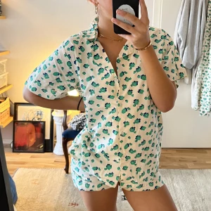 Ett jättegulligt pyjamasset från Beck Söndergaard med tillkommande tygkasse i samma blommiga bomullstyg. Perfekt nu inför sommaren och båda delarna går ju att använda till vardags också. Ett multifunktionellt set! Aldrig använt, endast testat.Nypris 799kr