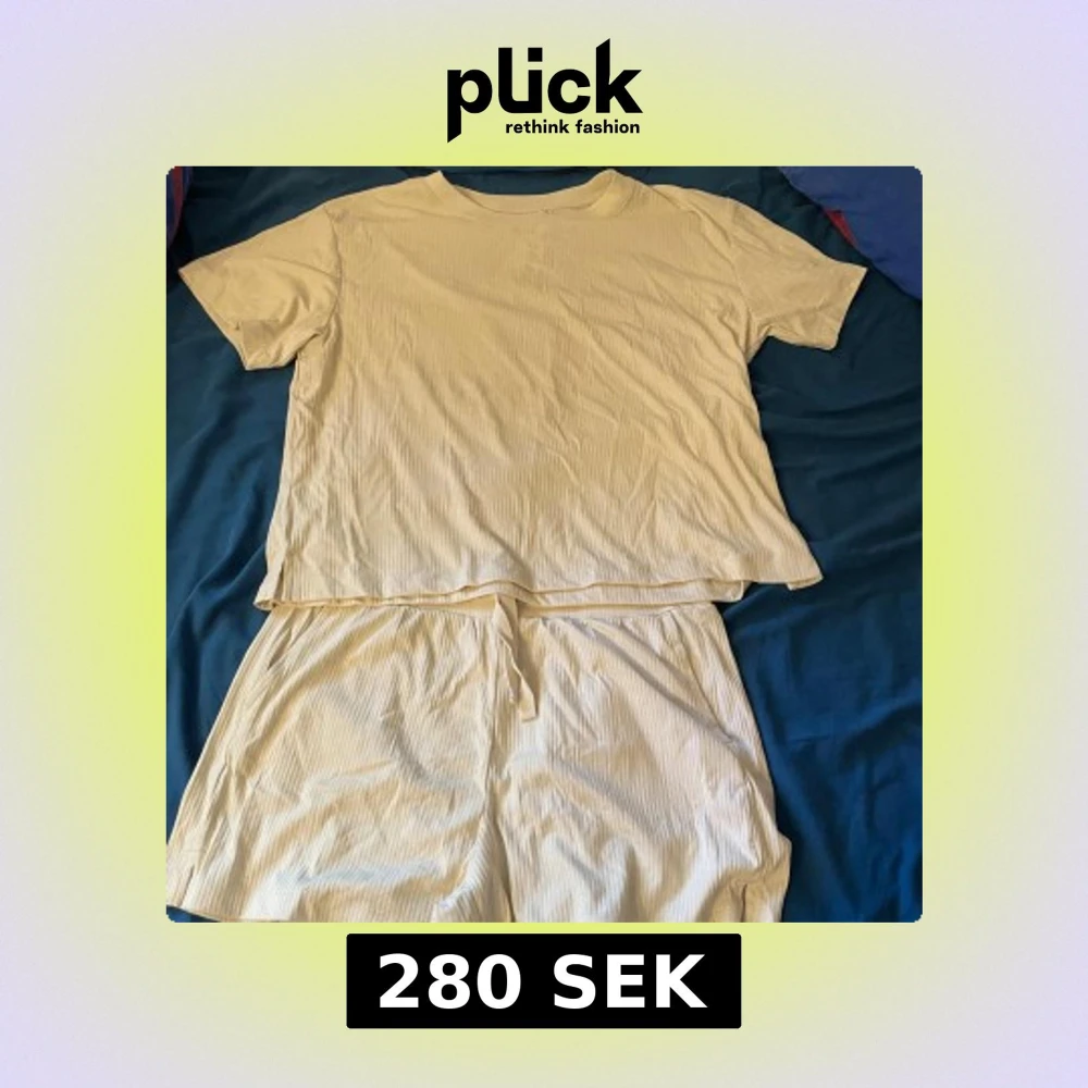 Snygg beige pyjamas från Kappahl i ribbat material. Den har en relaxed fit och elastisk midja med snörning för extra komfort. Perfekt för varma dagar eller som chill-plagg hemma.