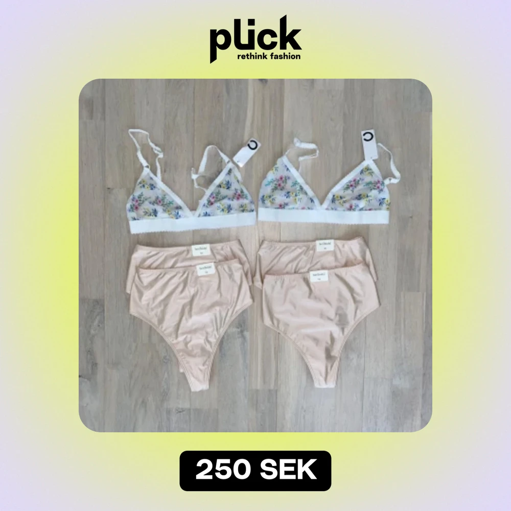 2 styck bh bralette STRL S, nypris 149kr styck 4 styck trosor i stringmodell STRL XS, nypris 99kr styck
